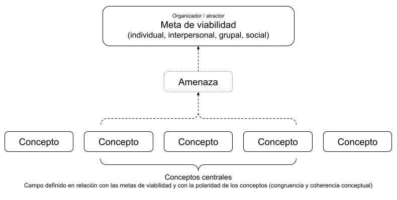 - La selección de estos conceptos en función del logro de metas de viabilidad individual, interpersonal y grupal/social. Implica concebir la organización de los conceptos, su selección y primacía, en torno a la consecución de metas de viabilidad.
